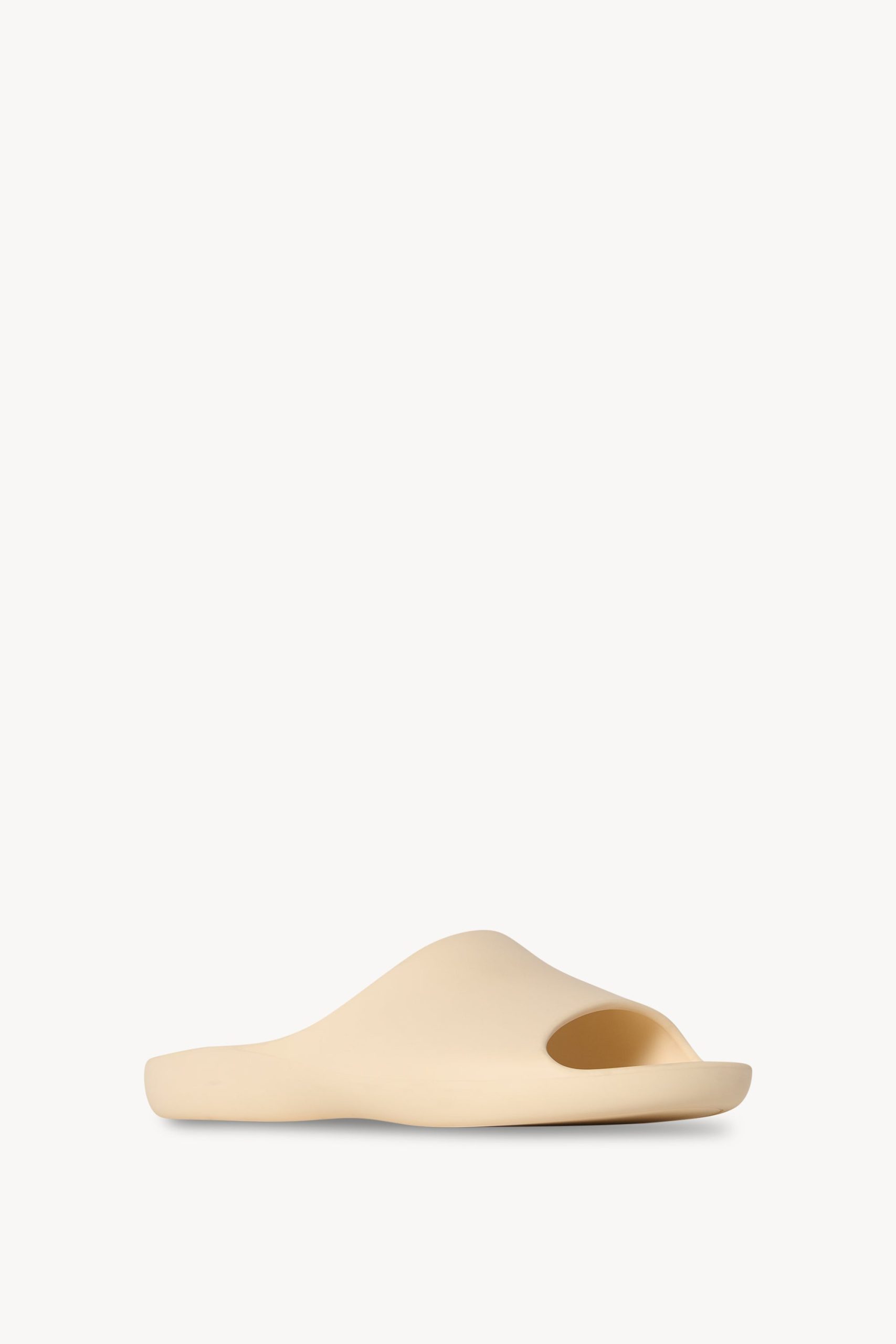 Smoothly curved slide sandal in lightweight rubber with contoured footbed and seamless construction.