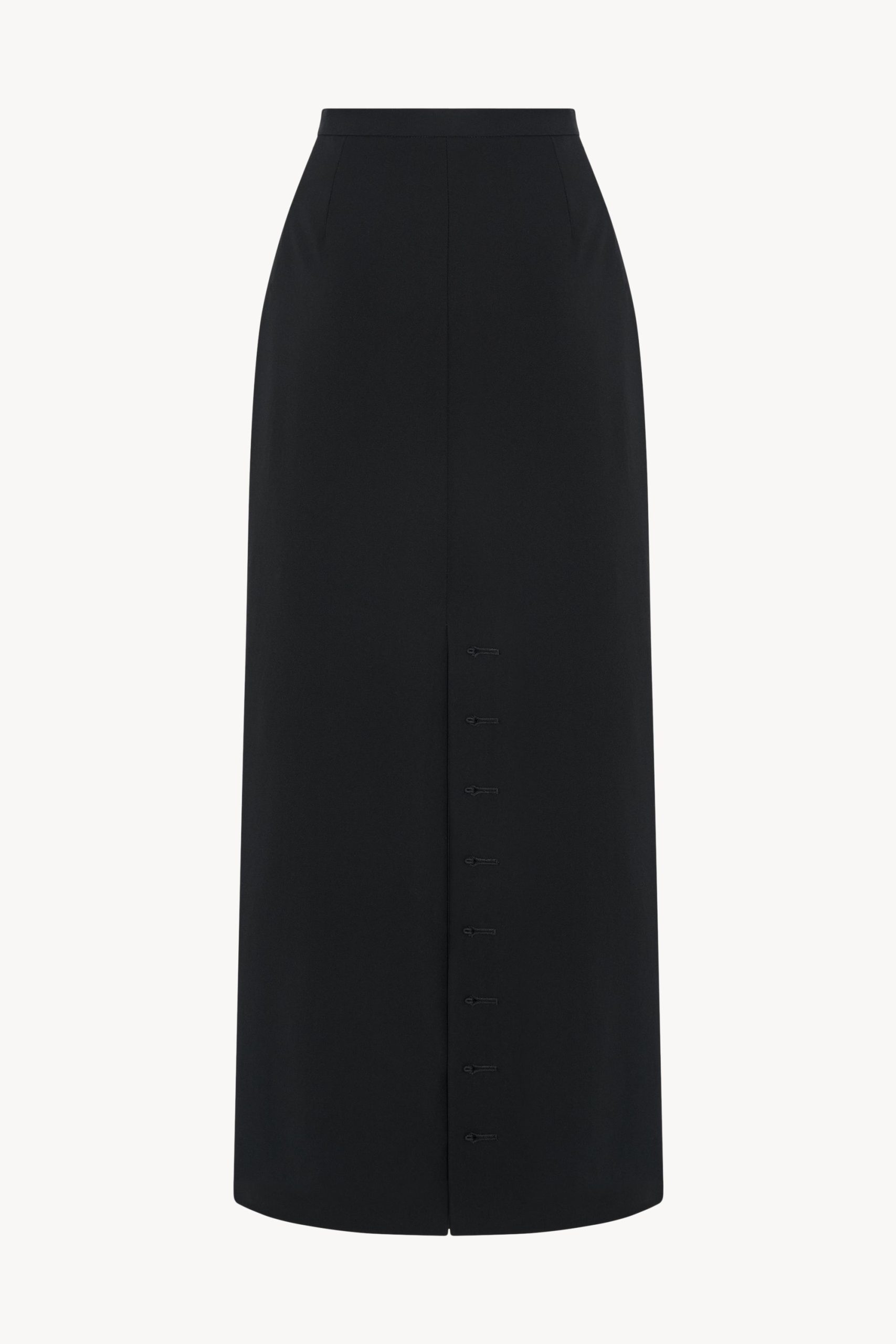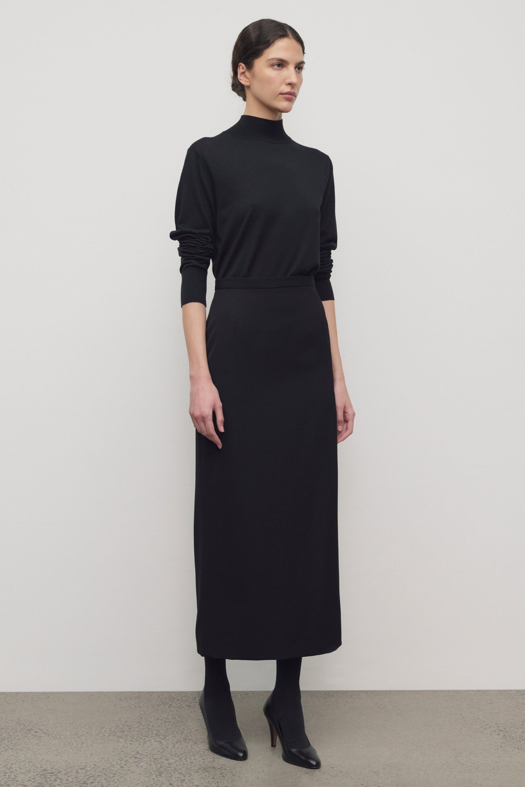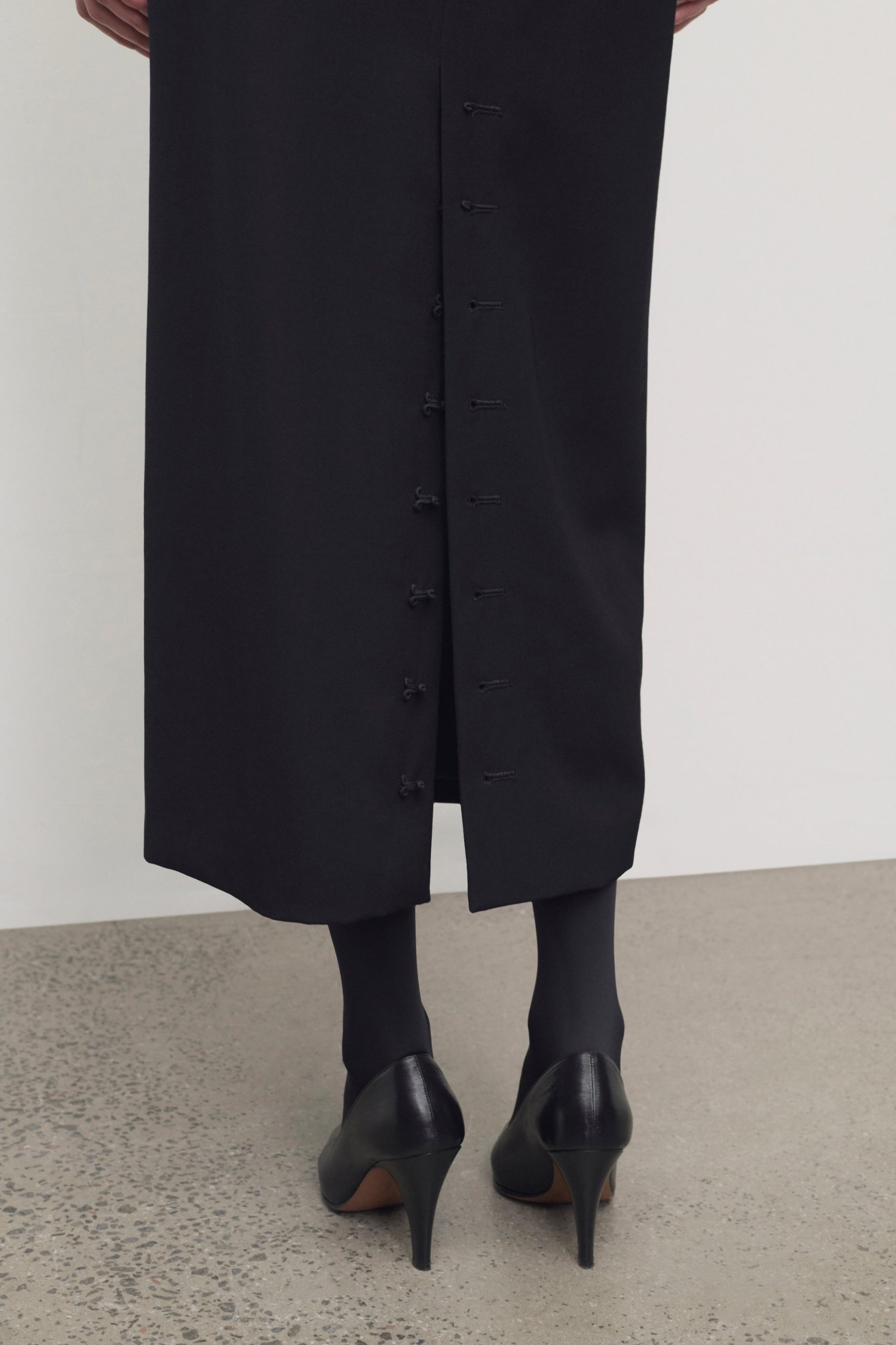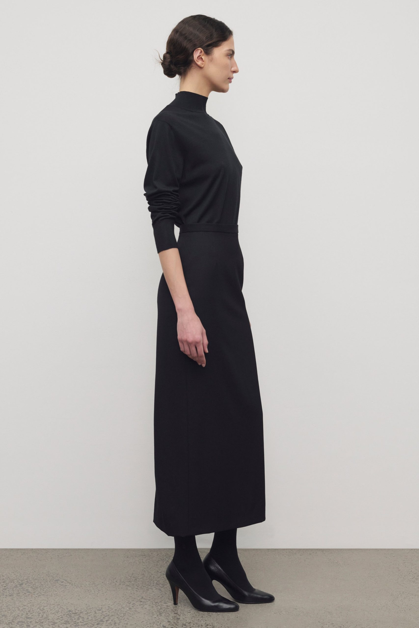 Ankle-length pencil skirt in soft Japanese wool gabardine with slim fit. center back hem vent wit hook and buttonhole. and concealed side zip closure.