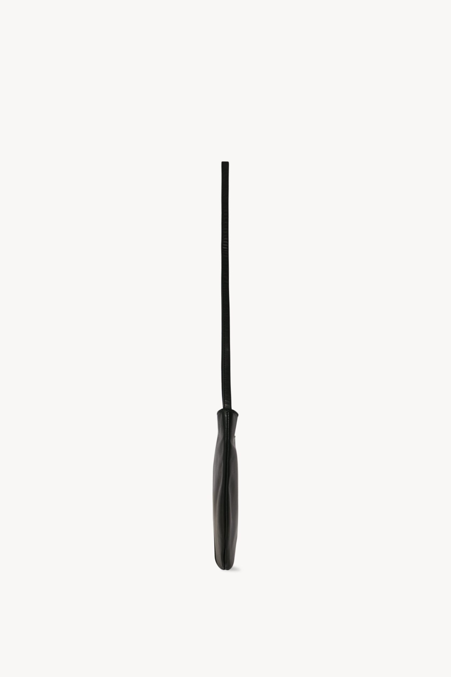 Gently curved shoulder bag in smooth nappa leather with slim strap. embossed logo on side. and zipper closure.