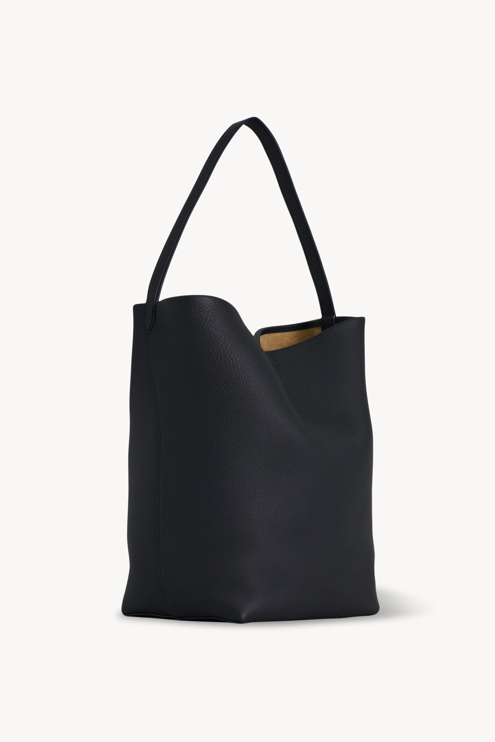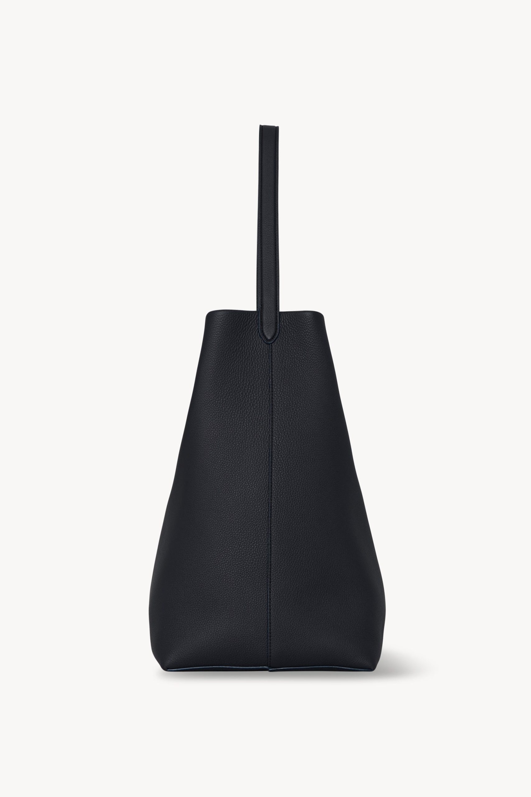 Classic tote bag in textured calfskin leather with interior toggle closure and flat handle.