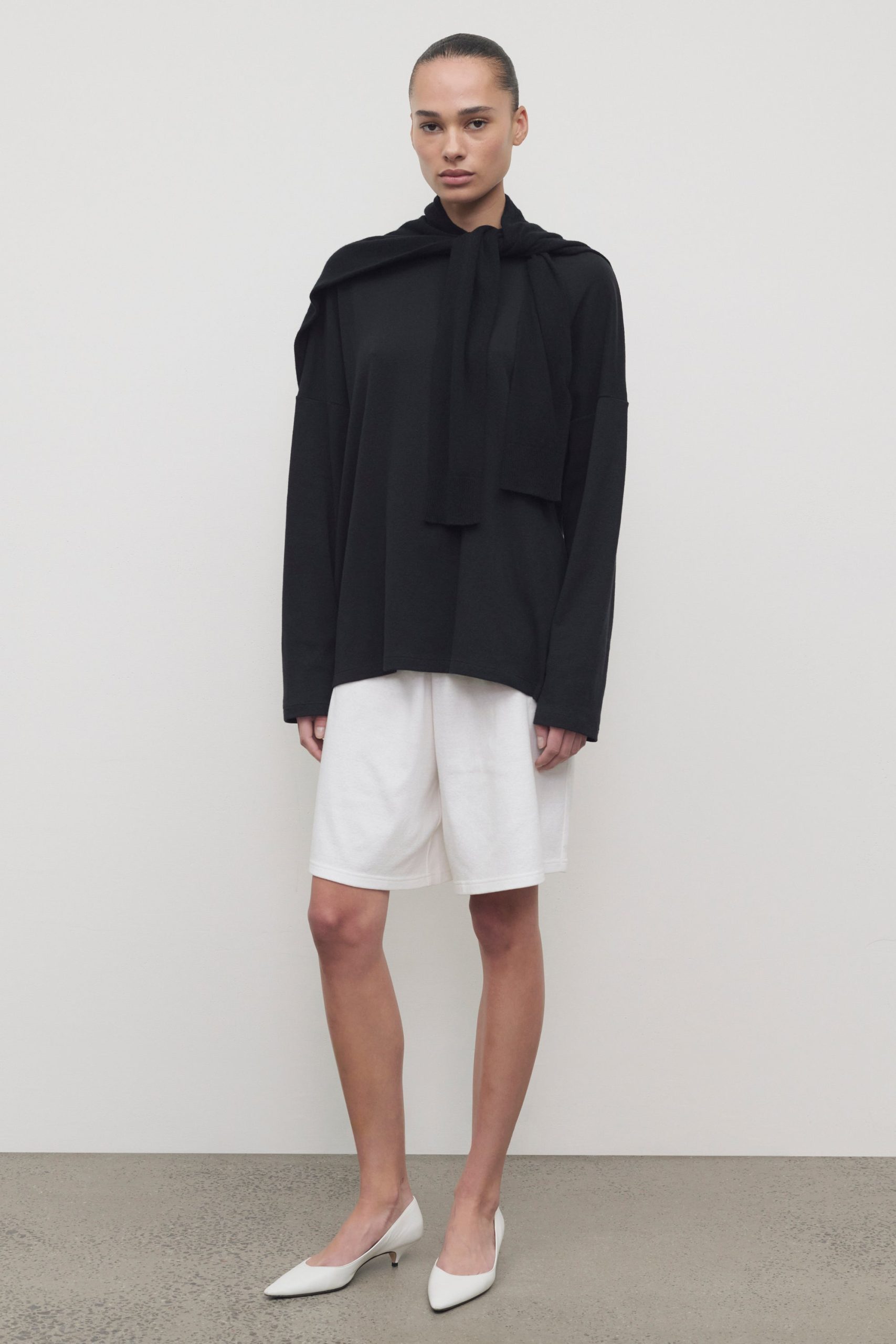 Mid-rise pull-on short in Japanese cotton jersey with relaxed fit and elastic waist. Crafted from cotton grown at high altitudes. this fabric is characterized by a distinctive firm structure and textured irregular hand.