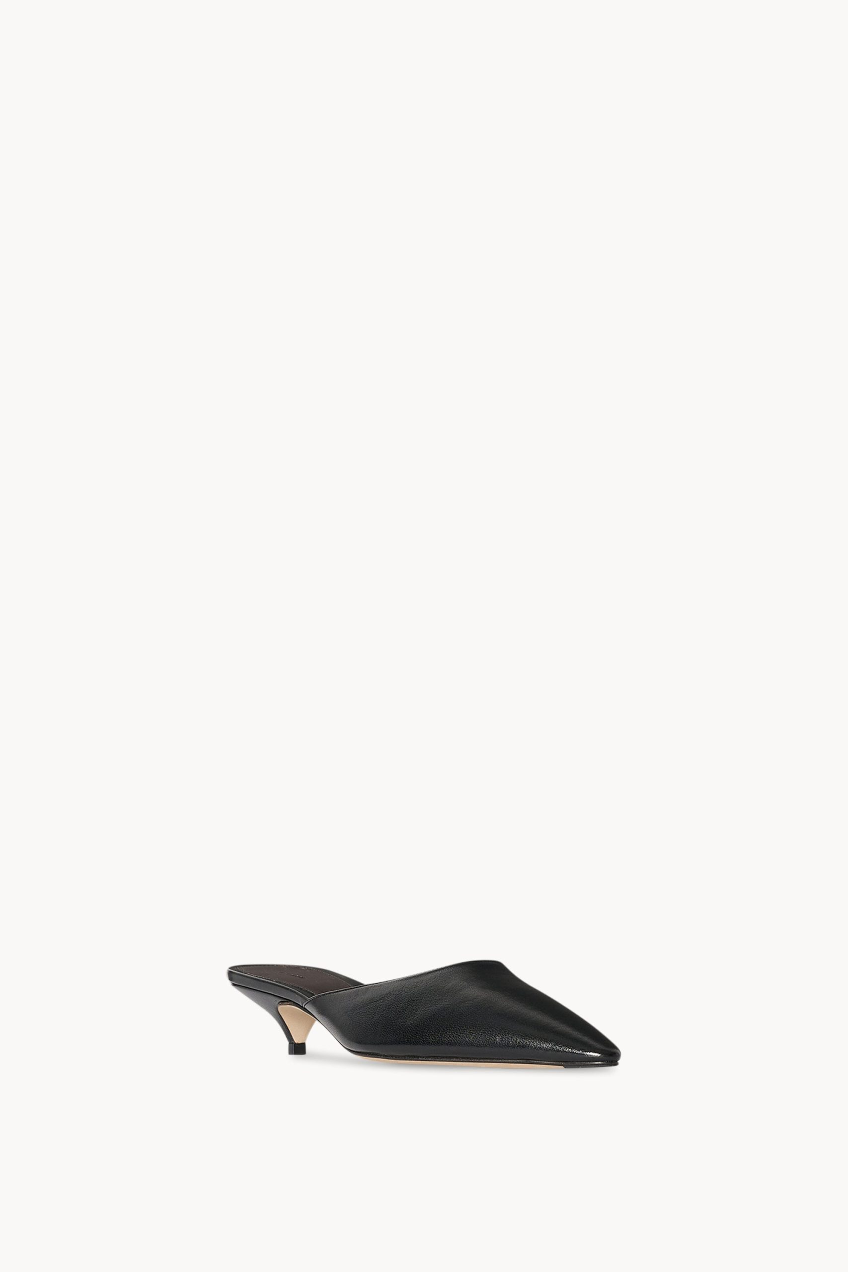 Low-heeled mule in soft lambskin leather with pointed toe and leather sole.
