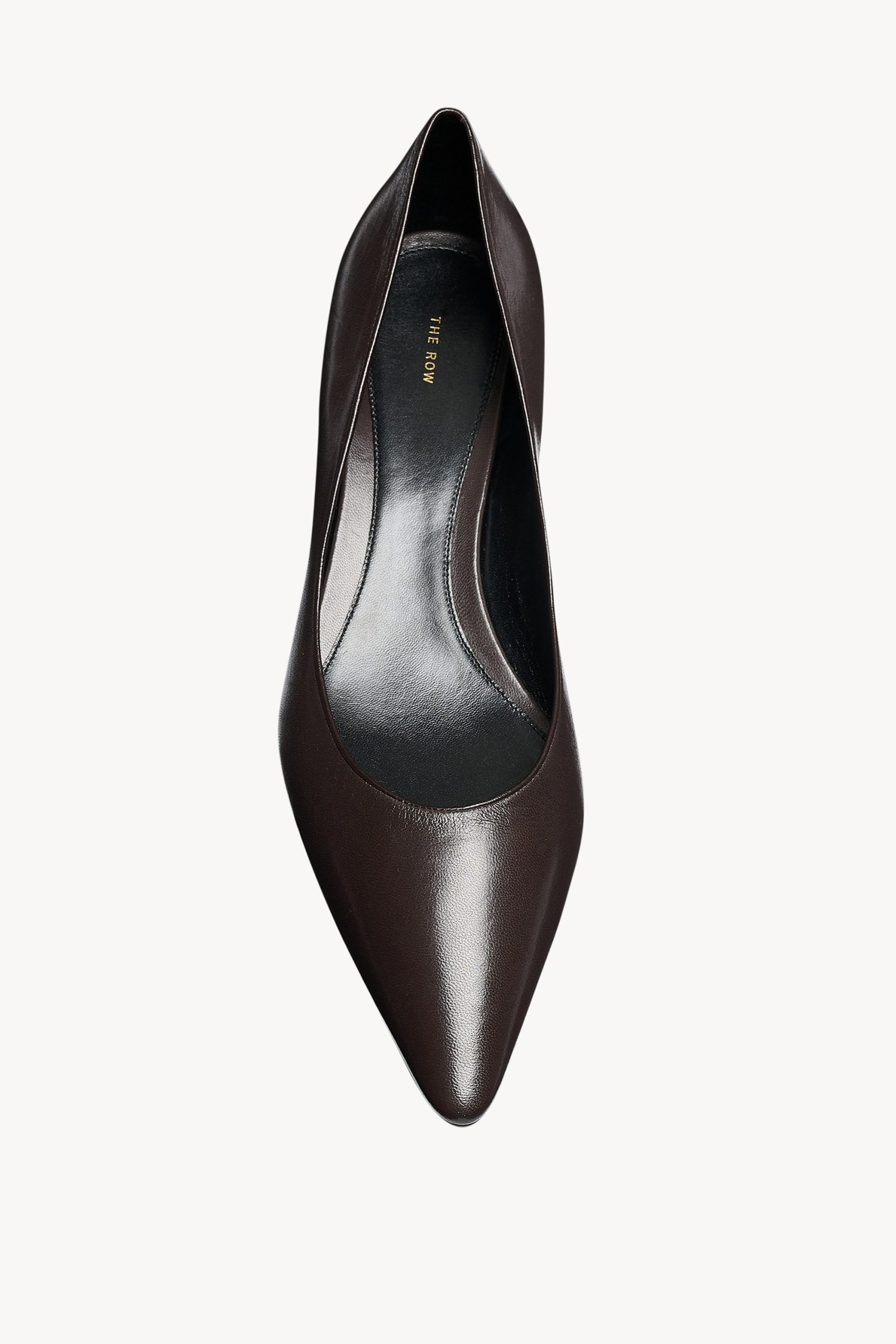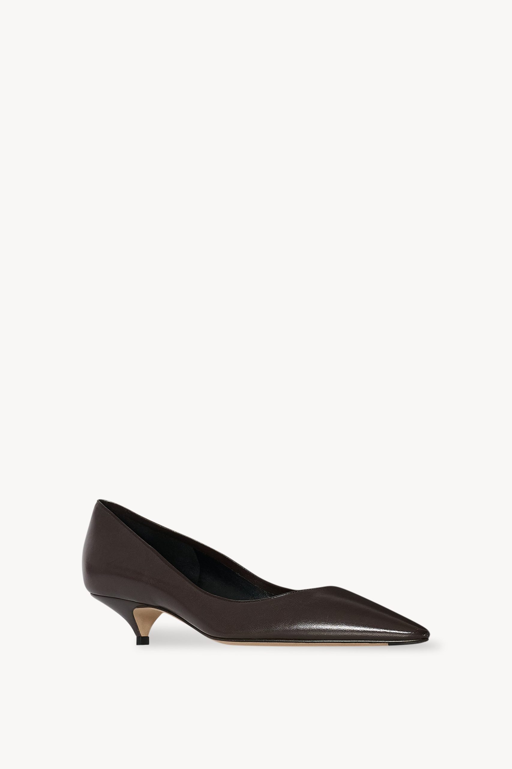 Classic kitten heel in soft lambskin leather with pointed toe and leather sole.