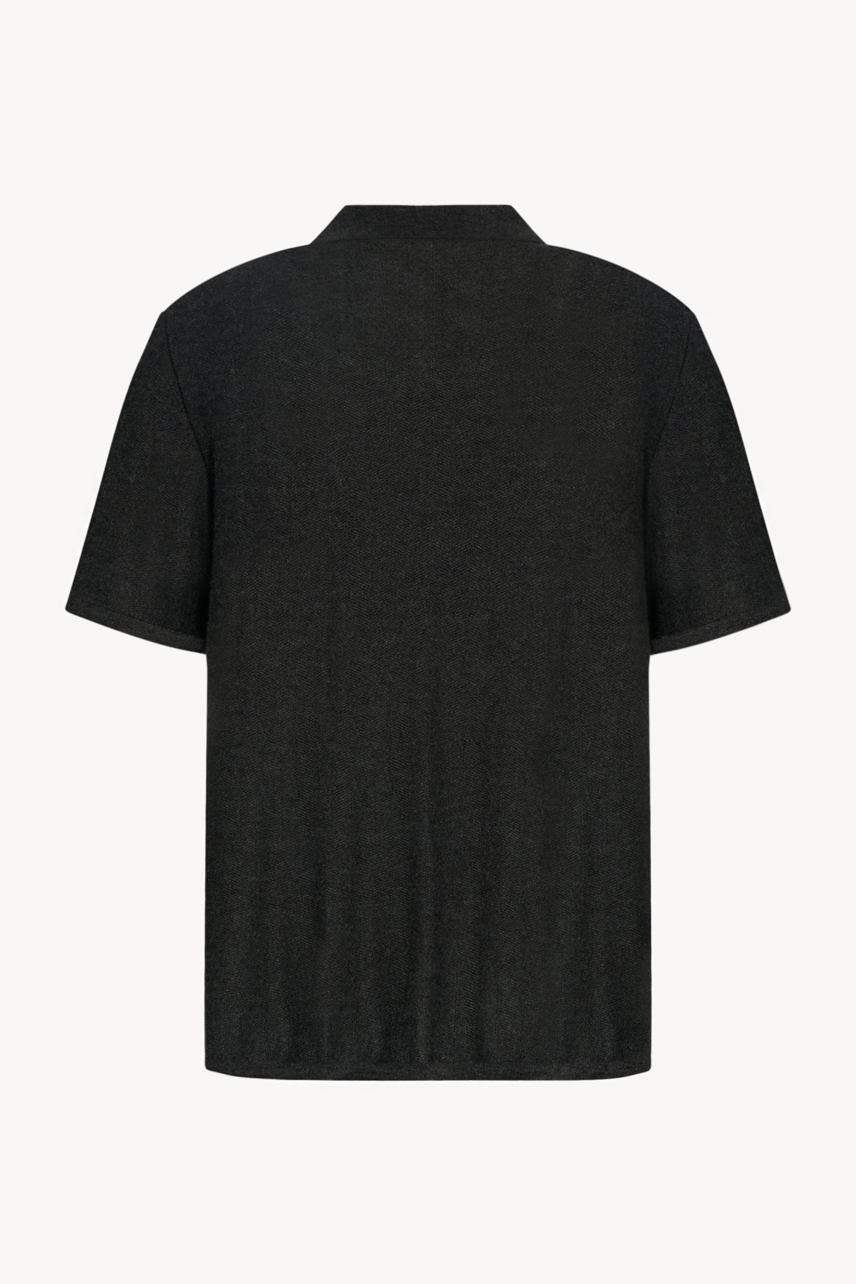 Short-sleeved polo top in featherlight worsted cashmere with classic fit. buttonless front tab. and ribbed collar. With an exceptionally fine structure and soft hand. the pure cashmere knit is ideal for seasonless layering.