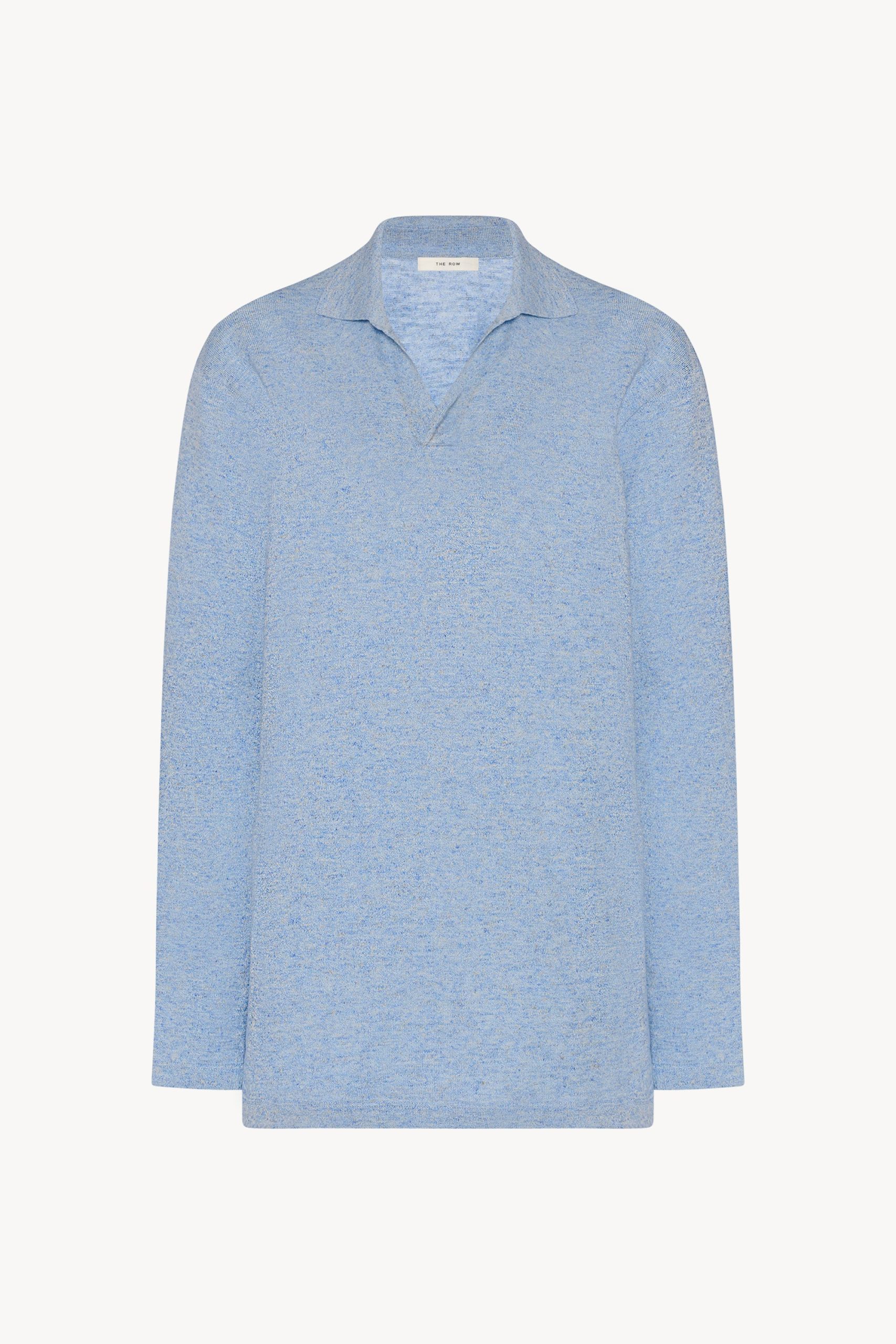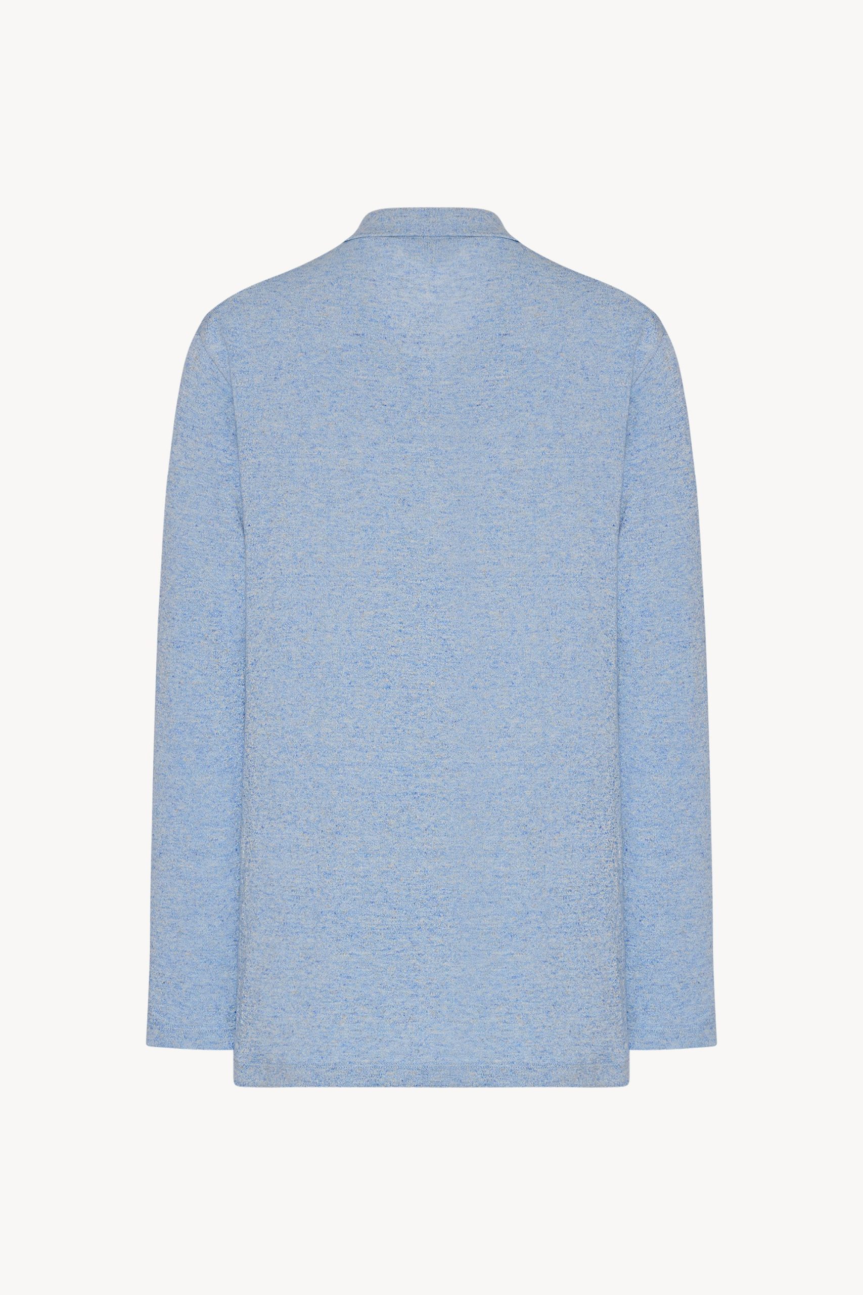 Long-sleeved polo top in lightly textured melange cotton with oversized fit. buttonless front tab. and clean edge finish with covered stitch detailing. Crafted from organic cotton and natural linen. the fabric offers a lightweight yet structured hand and casually refined feel.