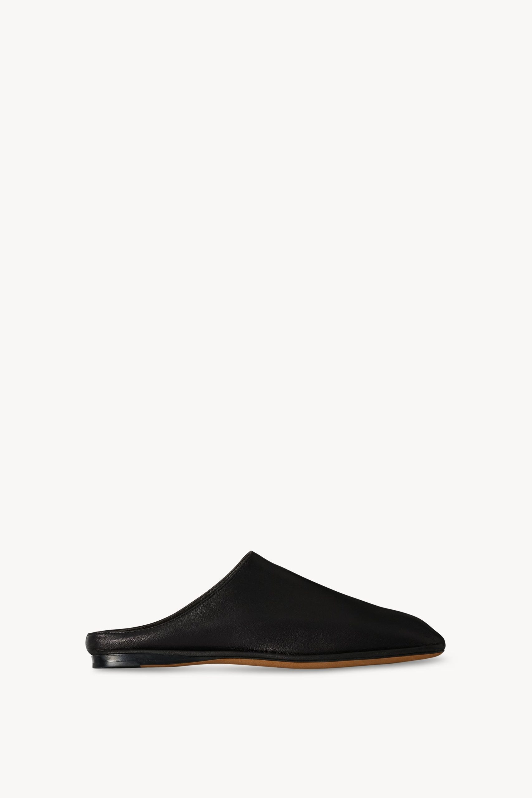 Artisanally-crafted slip-on shoe in soft calfskin leather with square toe. outer stitch detailing. soft nappa leather lining. and leather sole.