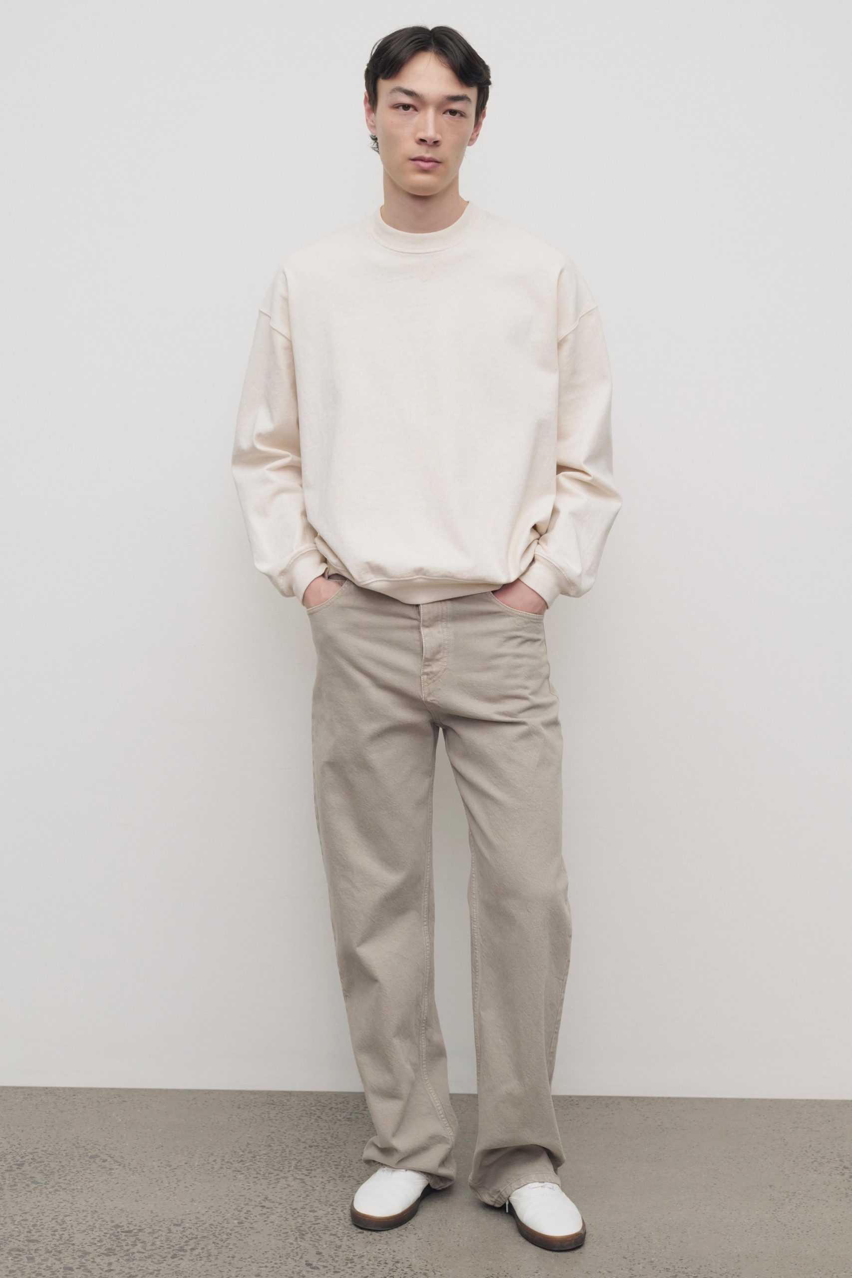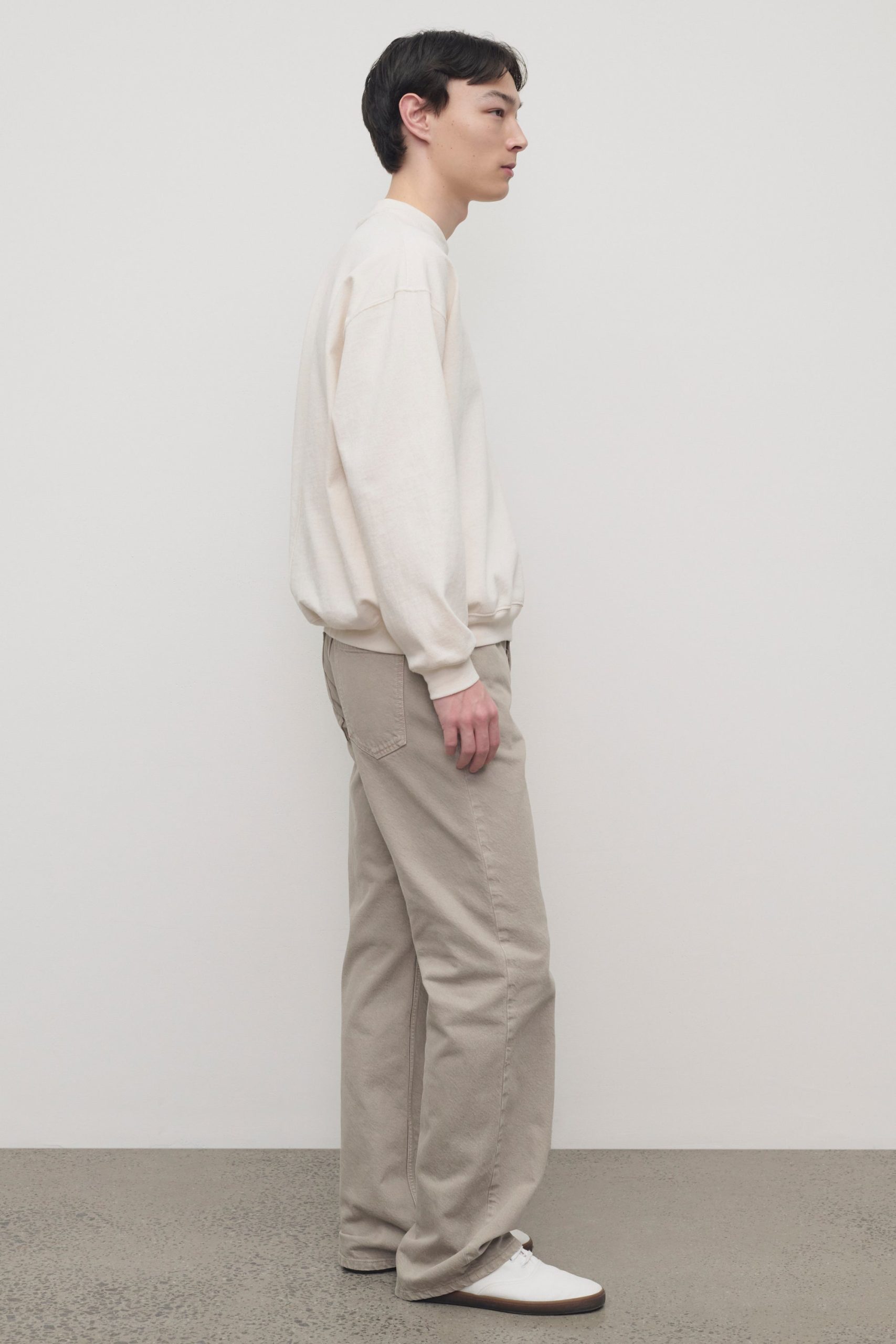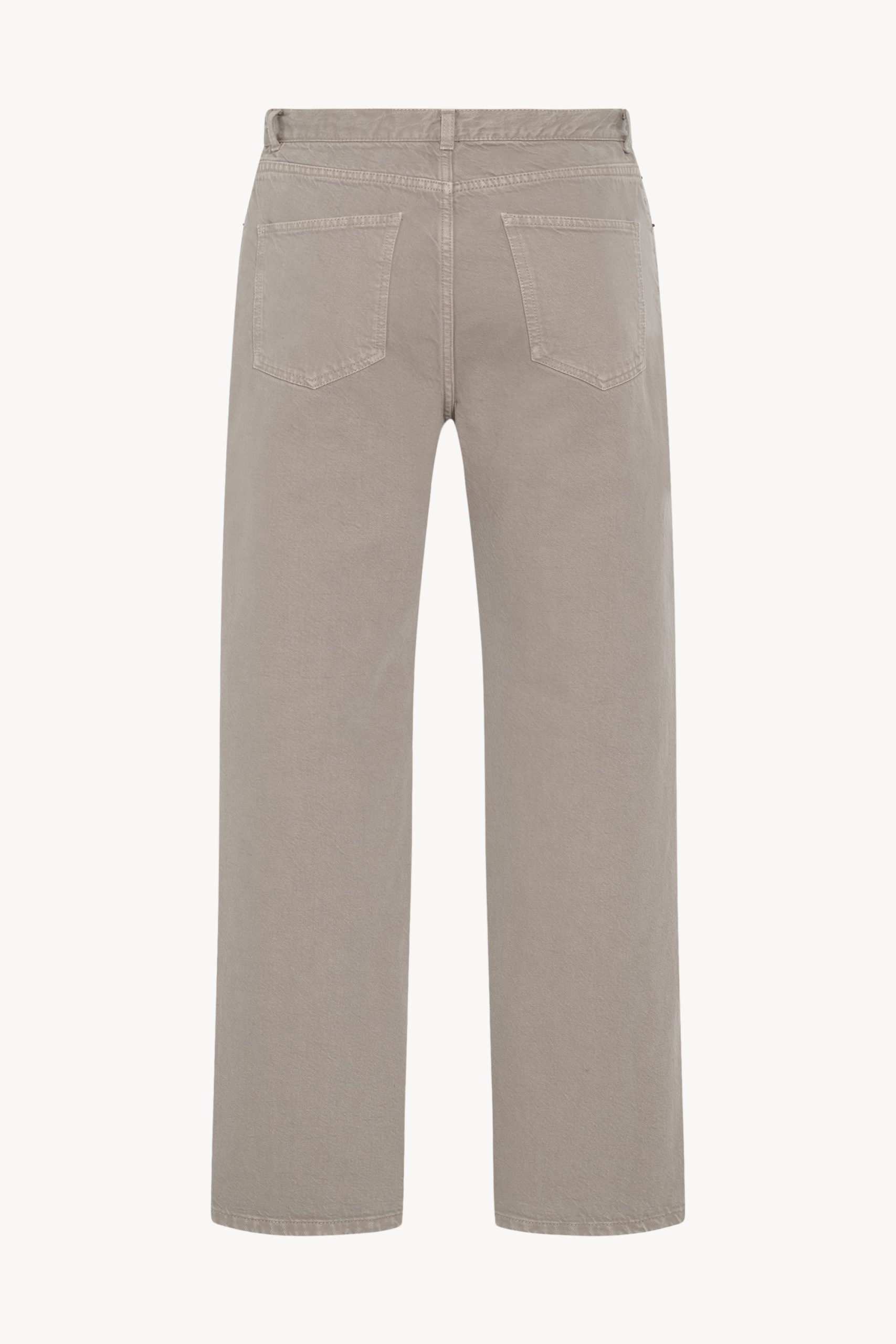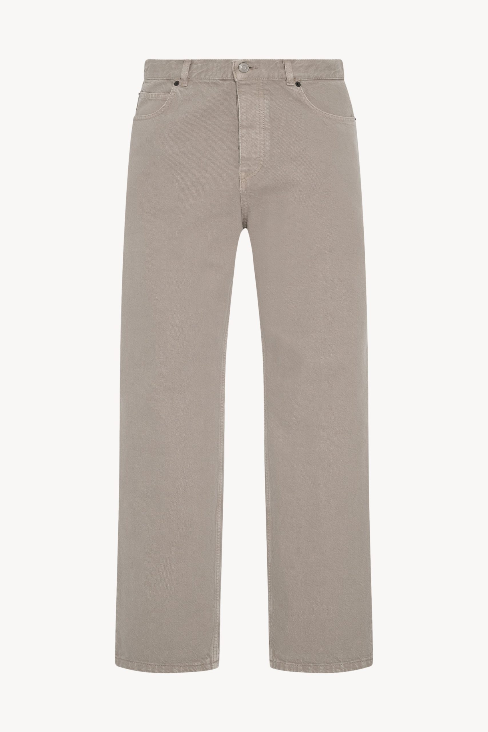 Relaxed mid-rise jean in garment-dyed denim with straight leg. tonal topstitching. and classic 5-pocket construction. Crafted from durable cotton. the fabric is traditionally dyed and stonewashed. resulting in nuanced color that develops character over time.
