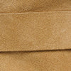 Lightweight moccasin in soft calfskin suede with oval toe. stitched vamp strap. and stacked heel.